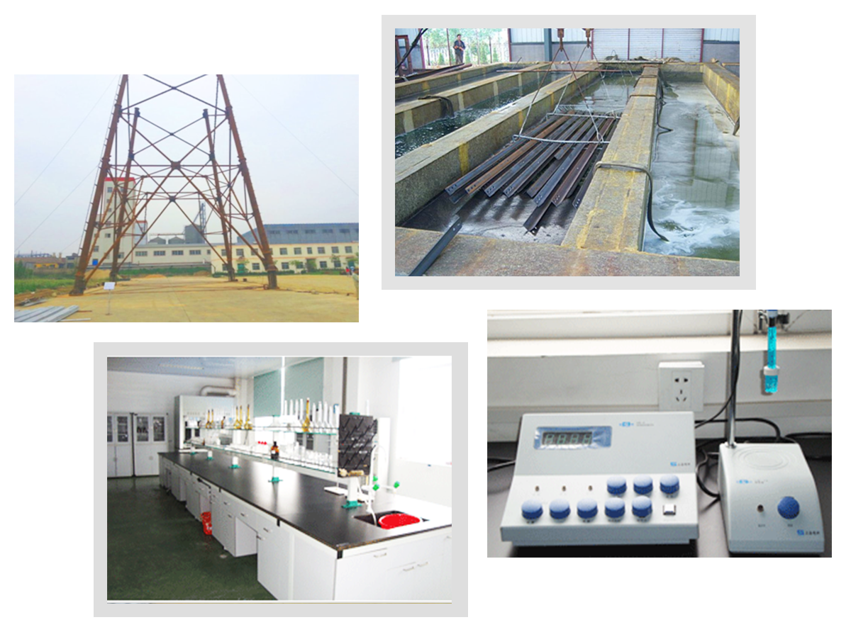 公司檢測手段完善,擁有五大元素化驗設備、沖擊試驗機、材料試驗機、硬度計、鋅層測厚儀、X射線探傷機、磁粉探傷儀、驗鋼鏡、超聲波探傷儀等各種理化試驗設備。